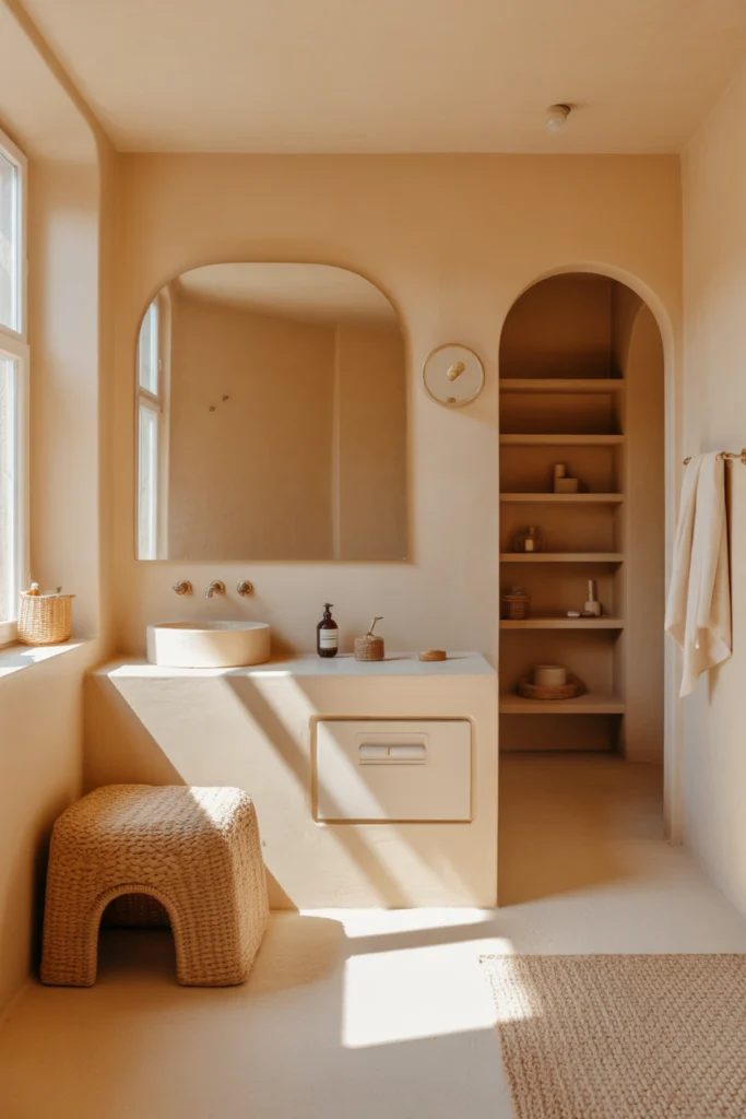 From a functional standpoint, warm beige tones perform well in bathrooms with limited natural light, as they prevent the space from feeling cold or stark. Beige is also timeless, reducing the need for frequent repainting. When styled with modern fixtures, beige bathrooms feel both classic and contemporary.