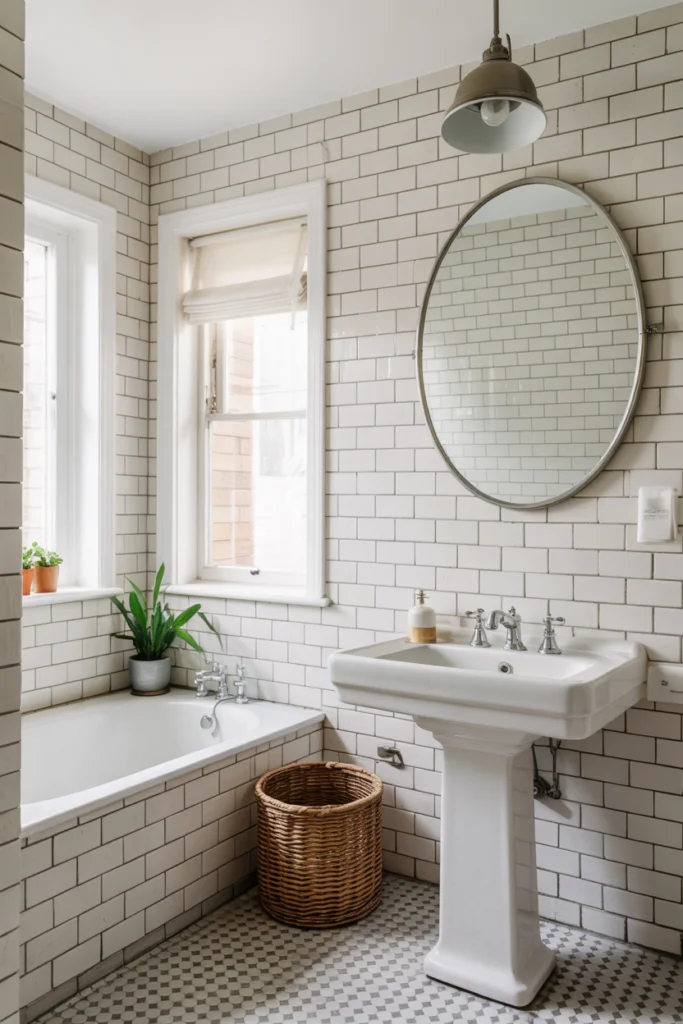 White subway tile remains one of the most timeless bathroom tile ideas. Its clean lines and neutral tone create a bright, open feel that works well in both small and large bathrooms. Subway tiles can be installed in traditional brick patterns or modern vertical layouts, offering flexibility in design.