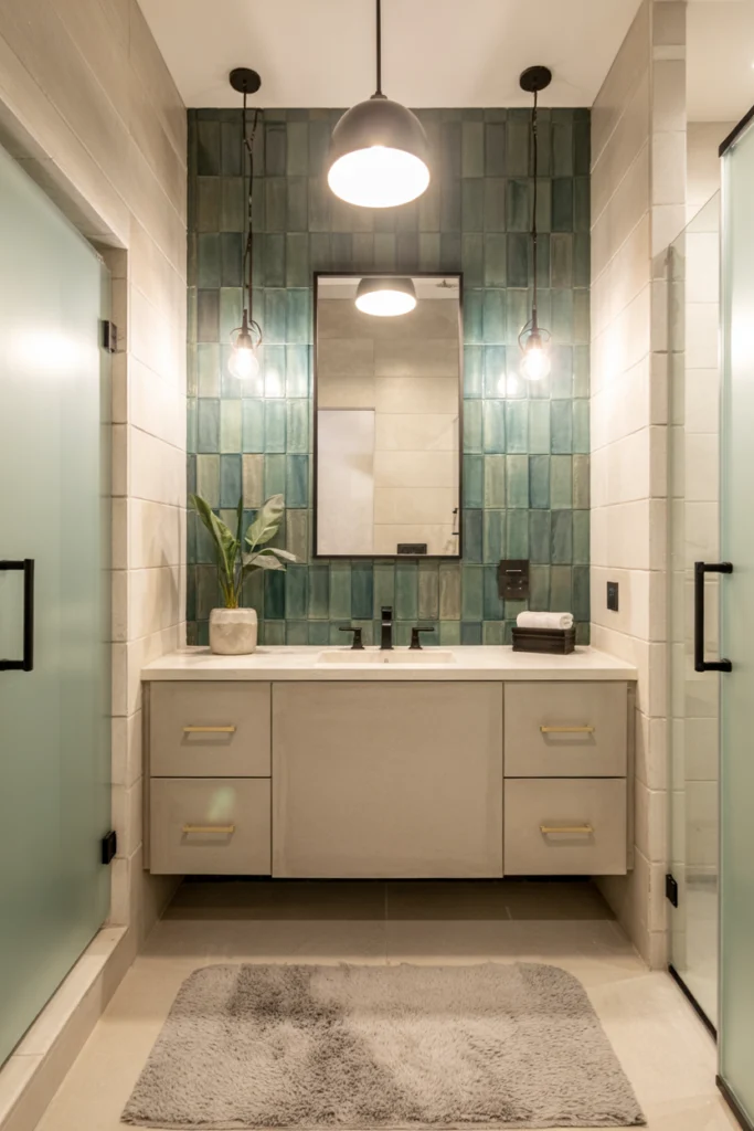 Functionally, accent walls allow homeowners to experiment with design while keeping maintenance manageable. This bathroom tile idea adds style and depth with controlled visual impact.