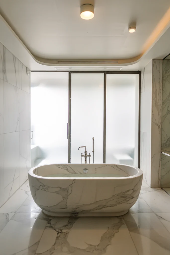 While marble requires proper sealing, its durability and aesthetic appeal make it a popular choice for master bathrooms. Used on floors, walls, or shower surrounds, marble tiles create a spa‑like environment that feels both stylish and functional.