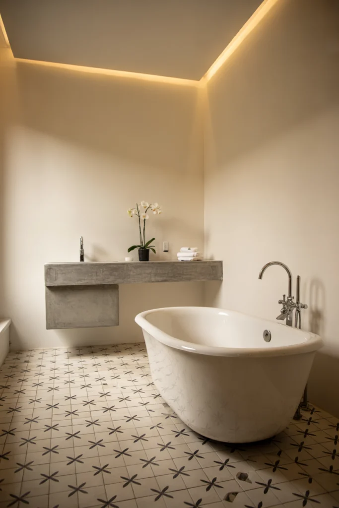 Patterned tiles add visual interest and personality to bathroom floors. From geometric designs to vintage‑inspired motifs, patterned bathroom tile ideas allow homeowners to make a bold statement without overwhelming the space.