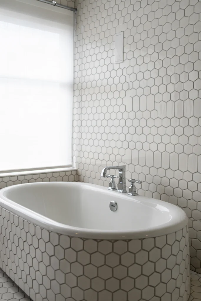 Functionally, hexagon bathroom tile ideas provide excellent traction when used on floors. They pair well with neutral colors or bold contrasts, offering versatility in design while maintaining practicality.