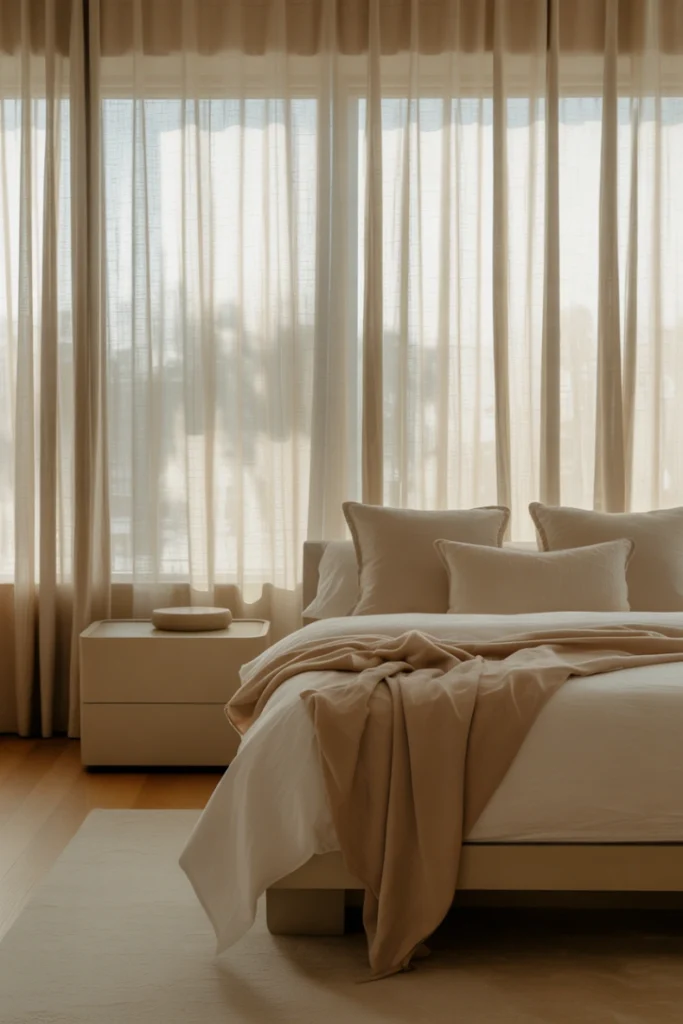Curtains play a major role in softening the bedroom and adding color or texture. Accent curtains can frame your windows beautifully and elevate the room’s design. Choose fabrics like linen, velvet, or cotton depending on the look you want. Longer curtains that touch the floor create a more luxurious feel.