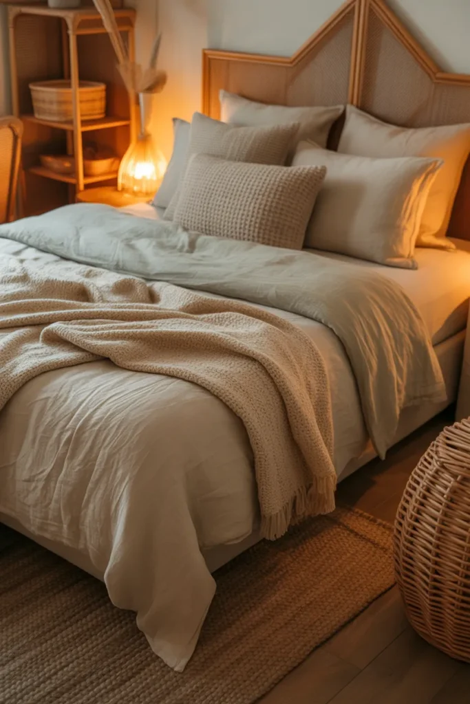 Texture can completely transform a bedroom, adding warmth, depth, and visual interest. This makeover idea focuses on using materials like velvet, wool, linen, faux fur, rattan, and natural fibers. Layering textures enhances comfort and creates a dynamic environment that feels personal and inviting.