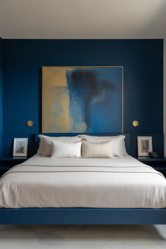A bold accent wall serves as a striking focal point that completely transforms your bedroom. This Bedroom Makeover Idea focuses on incorporating dramatic colors such as navy, emerald, charcoal, burgundy, or even black to create visual depth. Accent walls add personality and help define the overall mood of the space. Whether you choose paint, wallpaper, or textured paneling, a bold wall can shift the room’s entire aesthetic.