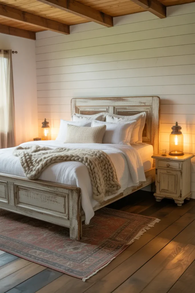 Rustic farmhouse bedrooms combine natural materials, warm textures, and vintage-inspired décor to create a comfortable, homey space. Wood beams, distressed furniture, and neutral color palettes form the foundation of this beloved aesthetic. Incorporating natural fabrics like cotton, linen, and wool adds coziness. This makeover idea embraces charm, authenticity, and lived-in comfort.