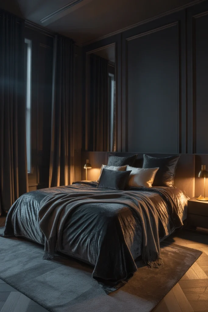 13. Moody Dark Bedroom for a Dramatic Look