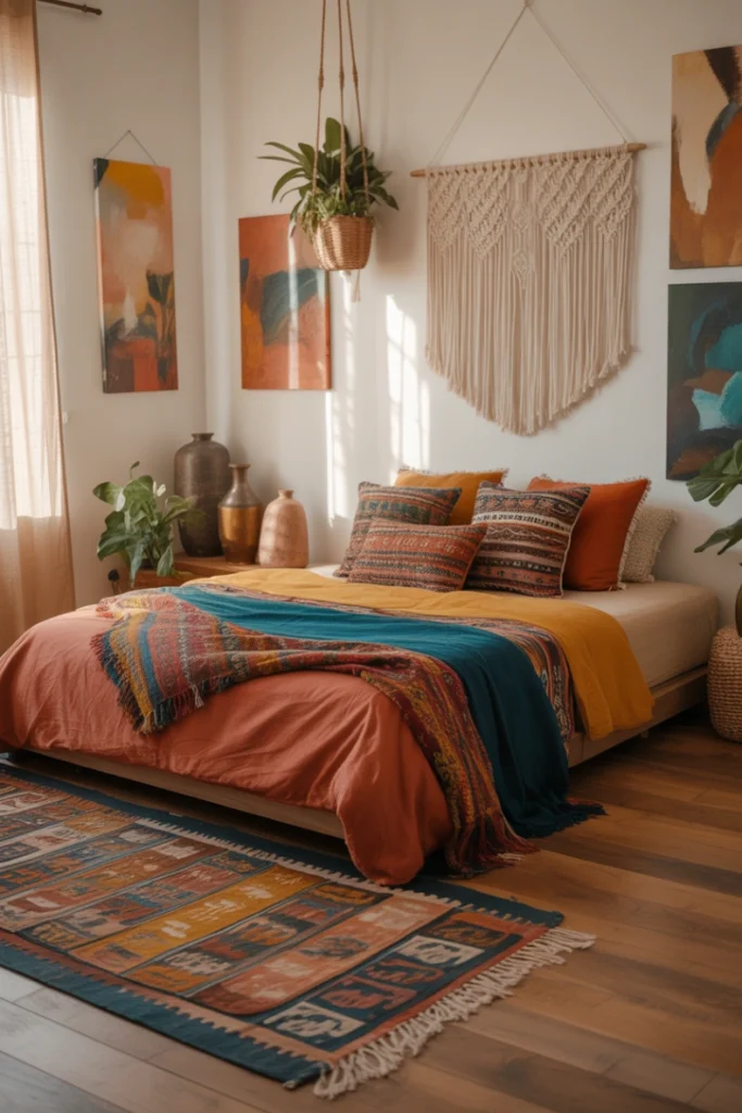 14. Modern Bohemian Bedroom with Artistic Flair