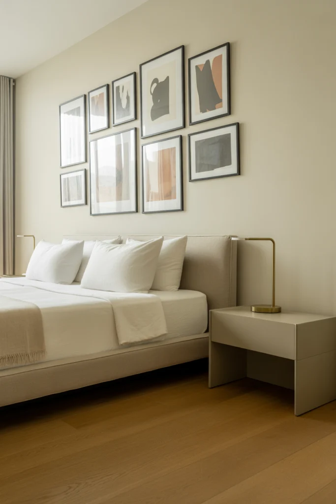 16. Artistic Minimal Bedroom with Gallery Wall