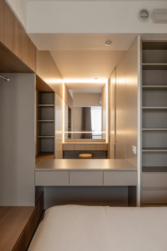For homeowners with limited space, a multi-functional layout can significantly improve daily living. This idea includes integrating workspaces, dressing areas, or lounge sections within the bedroom while maintaining a clean and organized flow. Modern bedroom remodels for 2026 lean toward built-in desks, compact vanity stations, and fold-away furniture to maximize usability.