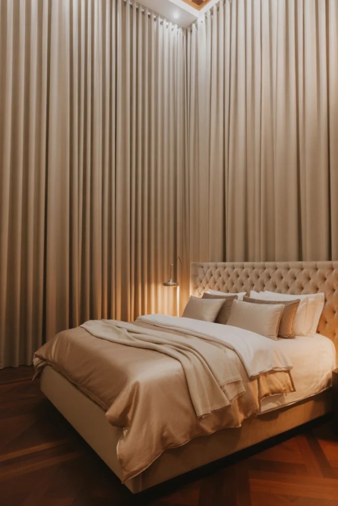 22. Bedroom with Floor-to-Ceiling Curtains for Soft Drama