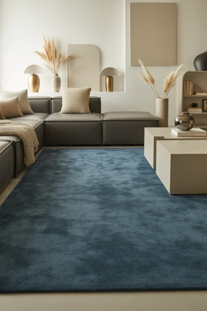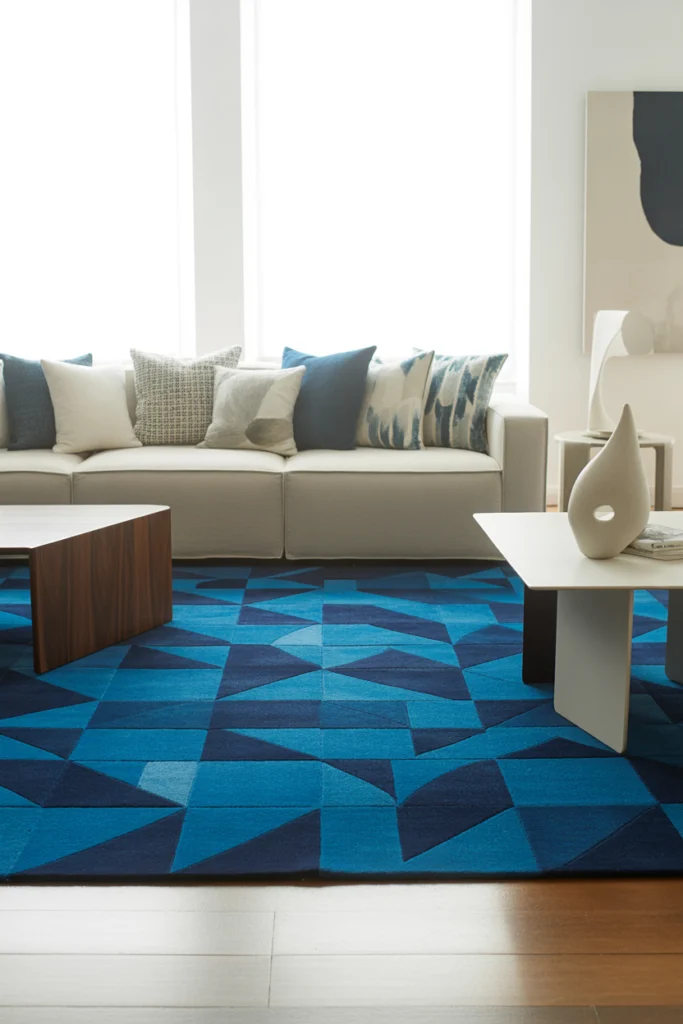 Adding a blue accent rug is one of the easiest ways to refresh your living room while introducing harmony and depth. Rugs anchor the furniture layout and help define the main seating area. Blue rugs—whether patterned, abstract, or solid—bring movement and texture to the room while complementing a wide range of furniture styles.