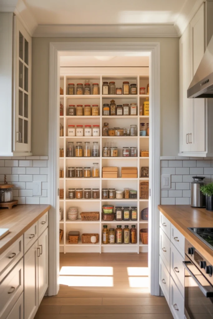 This design idea is perfect for families or people who cook often. It keeps your storage adaptable and practical. The result is a pantry that can grow and change over time without needing major renovations. It is one of the most useful features you can include.