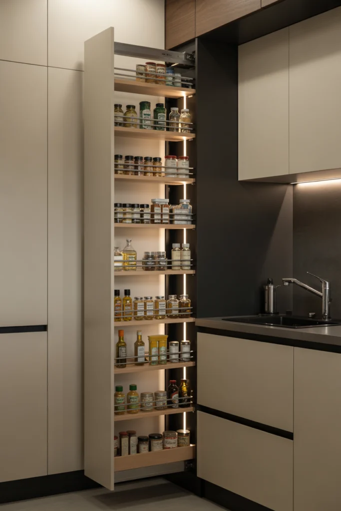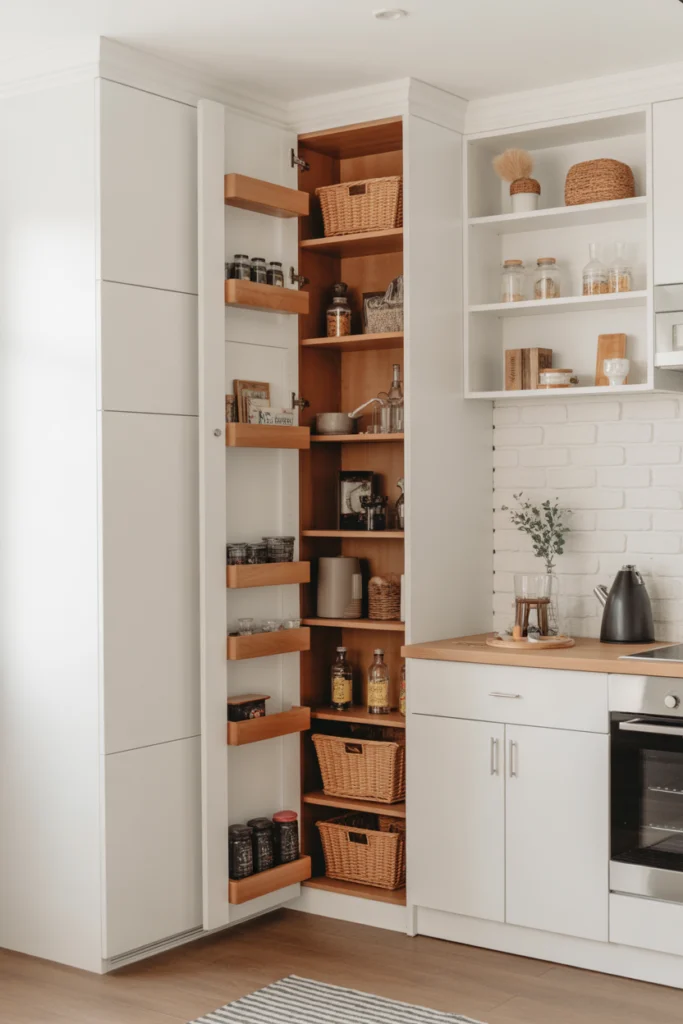 12. Narrow Pull-Out Pantry for Small Kitchens