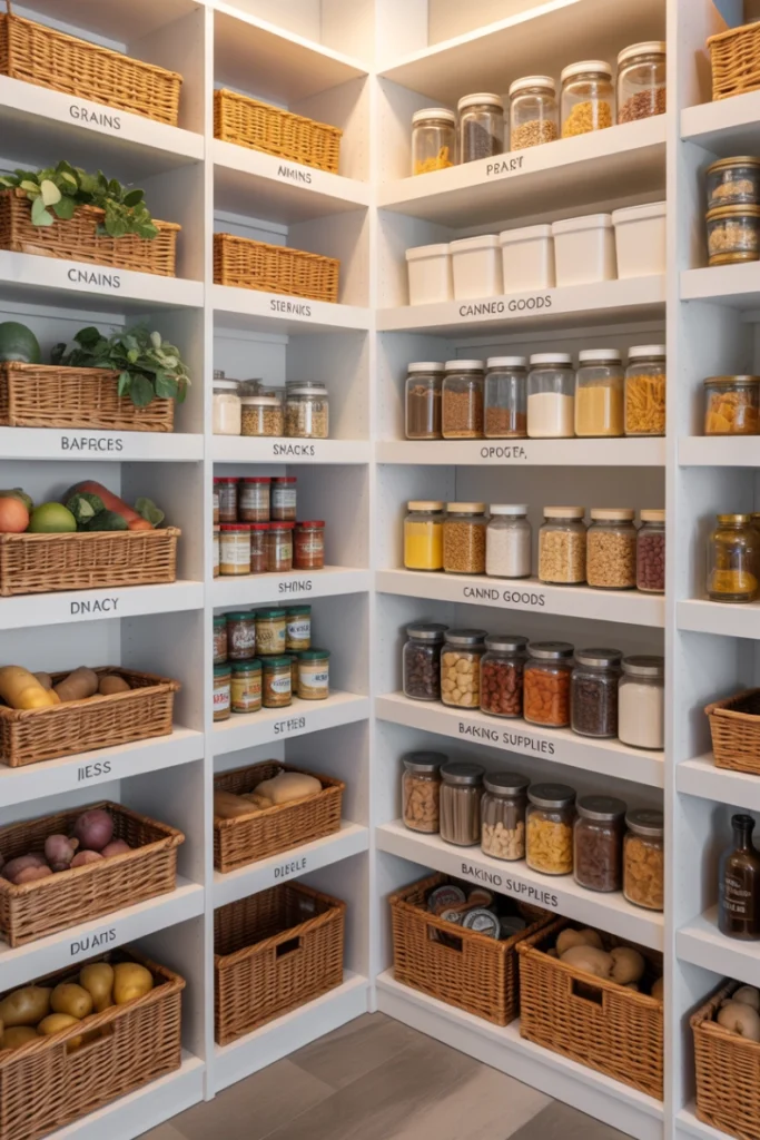 13. Pantry With Baskets for Categorized Storage