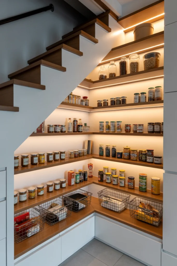 8. Under-Stair Pantry for Compact Spaces
