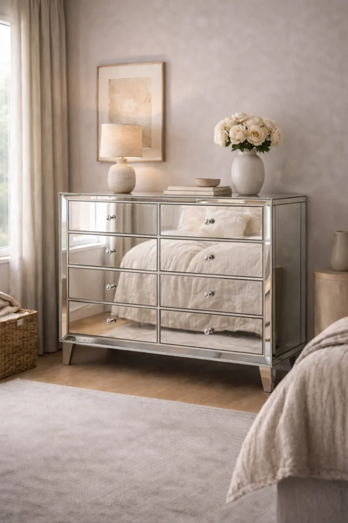 Mirrored chests add glamour and sophistication, especially in bedrooms or dressing areas. Paired with soft lighting, they create an elegant focal point while offering practical storage.