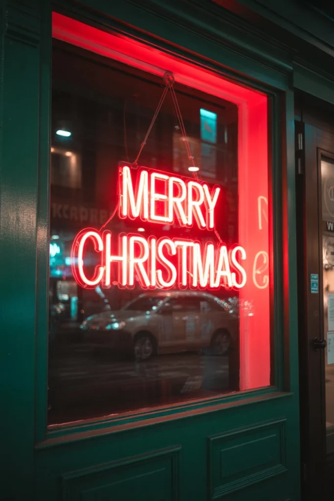 Modernize your décor with LED neon light shapes — think snowflakes, Christmas trees, or “Merry Christmas” signs. These flexible, energy-efficient lights make a bold statement.