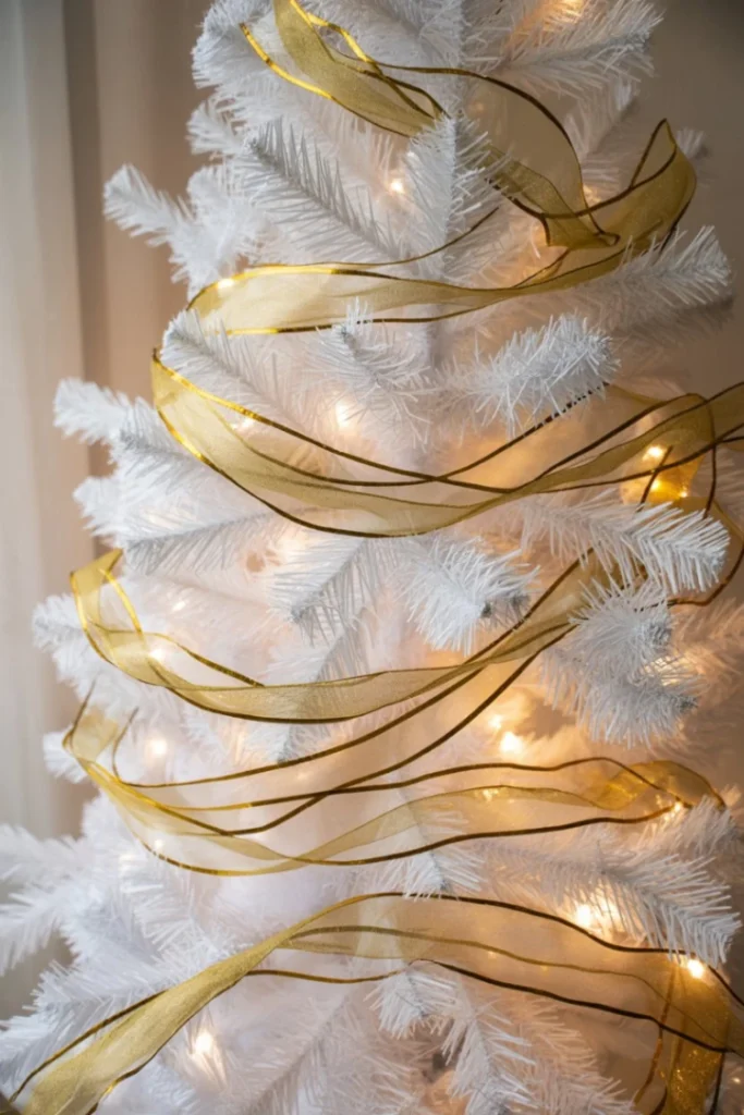 On a white tree, metallic ribbons stand out beautifully. If you’re using patterned ribbon, make sure it complements your ornaments instead of competing with them. A well-draped ribbon can transform a plain tree into a professional display.