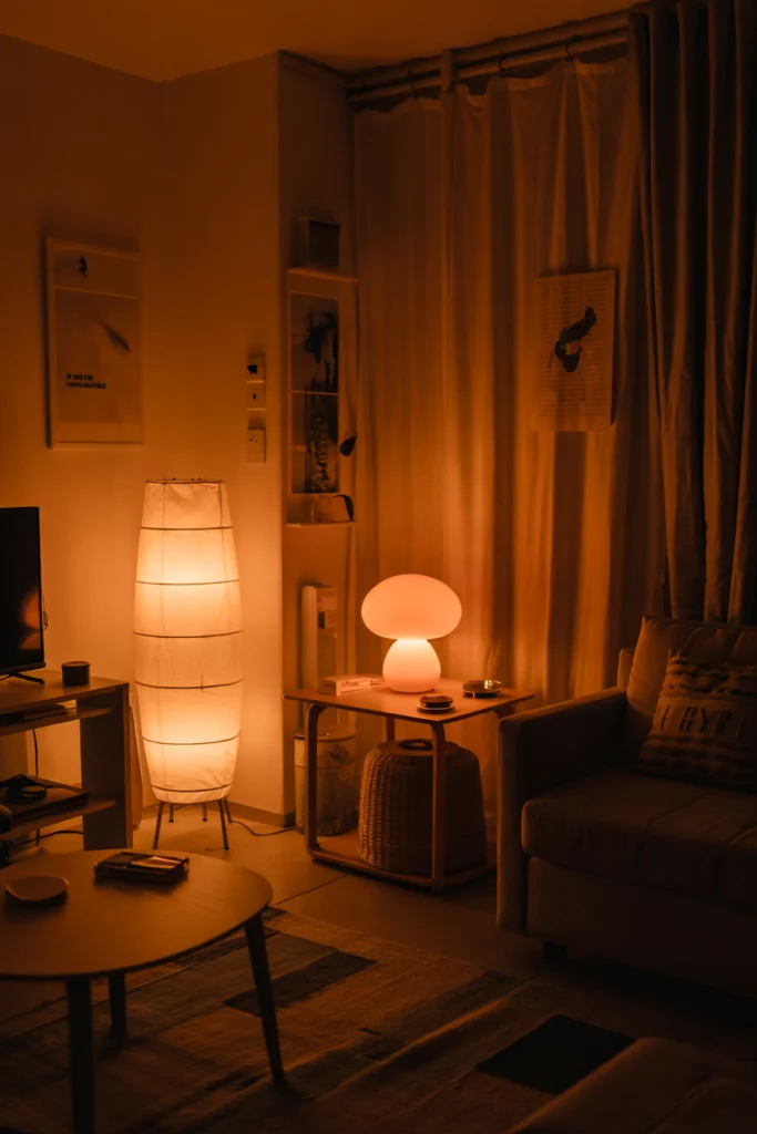 Lighting is one of the most impactful elements in a cozy apartment makeover. Relying solely on overhead lighting often results in a harsh, flat atmosphere that lacks warmth. Instead, layering multiple light sources throughout the apartment creates depth and visual softness. Table lamps, floor lamps, wall sconces, and accent lighting allow you to control brightness and mood depending on the time of day.