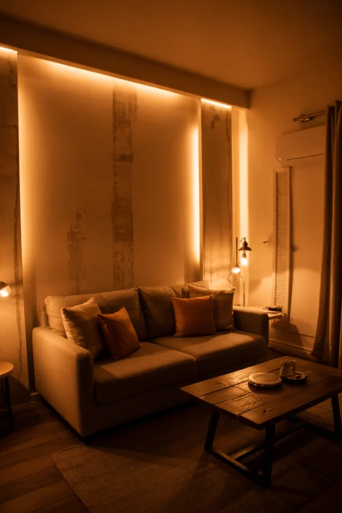 Accent lighting enhances warmth by illuminating corners and highlighting textures. Small lamps placed on shelves, side tables, or nightstands create layers of light that soften the overall space.