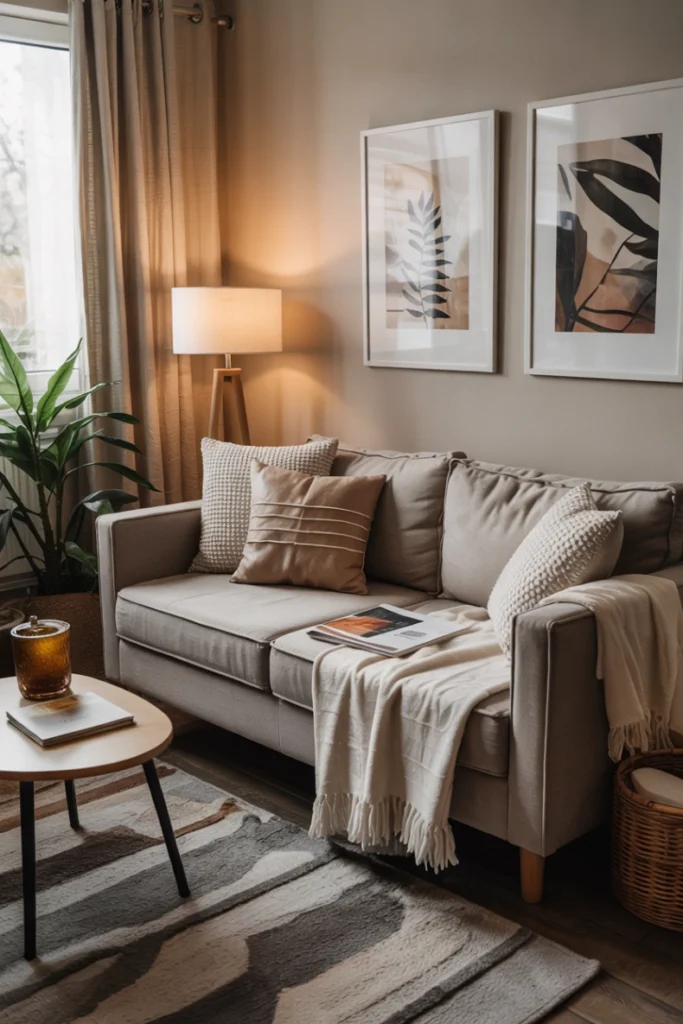 Using a consistent neutral palette throughout the apartment helps maintain visual flow. Warm neutrals also allow textures and lighting to stand out more effectively. As Cozy Apartment Makeover Ideas emphasize, color choice plays a key role in creating a calm, harmonious environment that feels inviting rather than sterile.