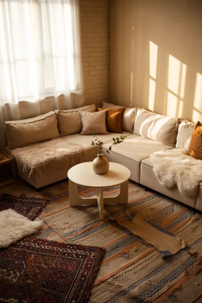 Start with a neutral base rug and layer a smaller textured or patterned rug on top. This creates visual interest while maintaining cohesion. Among Cozy Apartment Makeover Ideas, layered rugs offer both aesthetic charm and practical comfort.