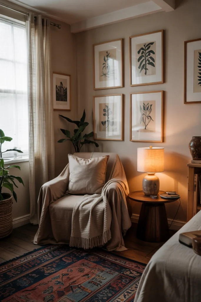 Gallery walls, framed prints, or textile art can add visual interest while maintaining balance. Stick to cohesive colors or themes to avoid clutter. Among Cozy Apartment Makeover Ideas, intentional wall decor enhances character while preserving calm.