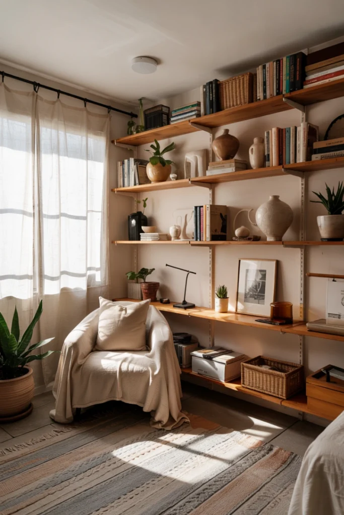 Open shelving allows you to display books and meaningful objects, while closed storage maintains visual simplicity. As Cozy Apartment Makeover Ideas highlight, smart storage solutions support both comfort and organization.