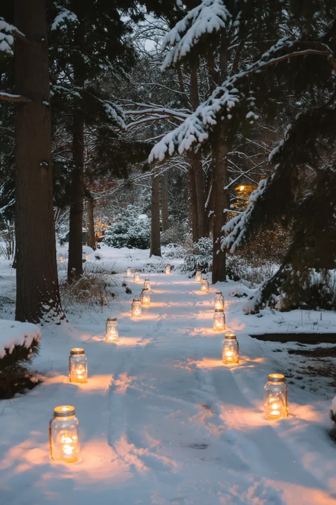 Illuminate your pathways with homemade lanterns crafted from mason jars or tin cans. Place battery-operated candles inside and decorate the exteriors with snowflake cutouts or ribbons.