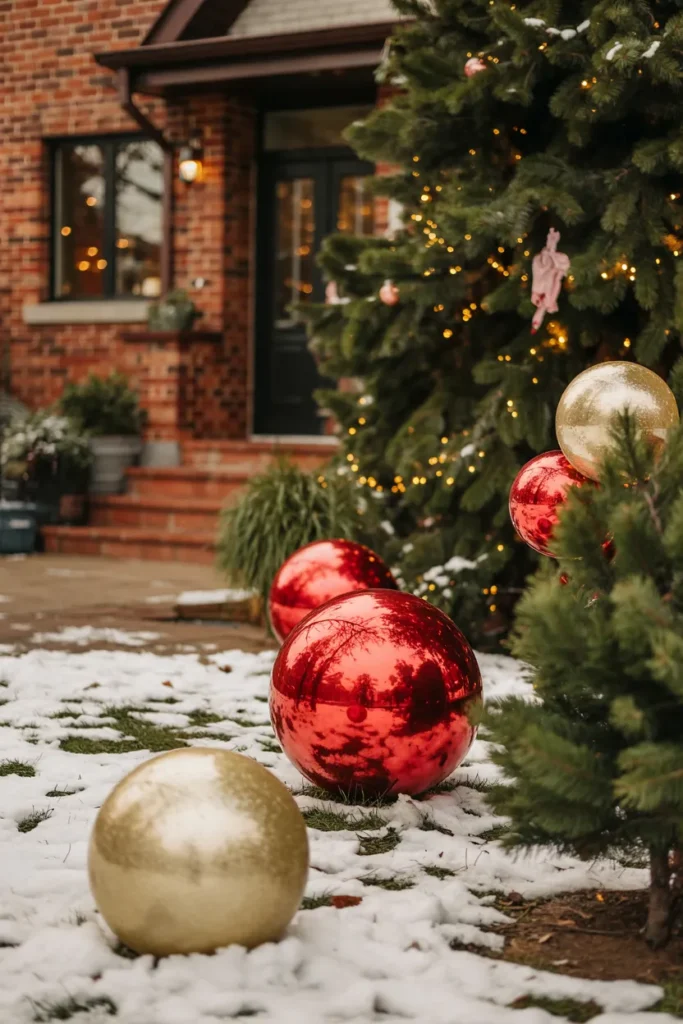 Cluster them around trees or near your porch for a fun and festive focal point. These giant ornaments make your outdoor space feel joyful and vibrant without much effort.