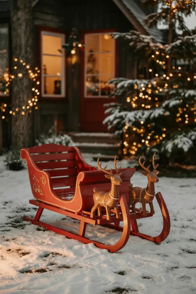 Add faux presents in the sleigh for a realistic, charming scene. This setup becomes an instant centerpiece and photo spot for your yard.