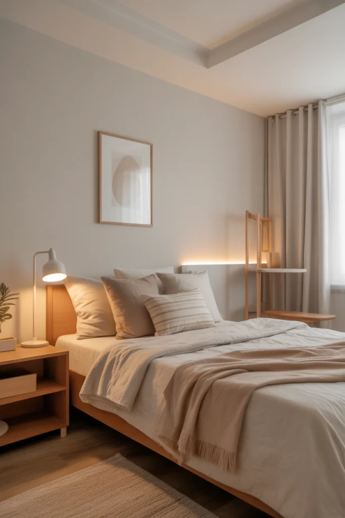 Neutral décor also allows for flexibility when adding small accent colors or seasonal elements. Because the base tones remain consistent, the room always looks put-together. A neutral aesthetic can also make the space appear larger, which is particularly beneficial in compact dorm rooms with limited natural light.