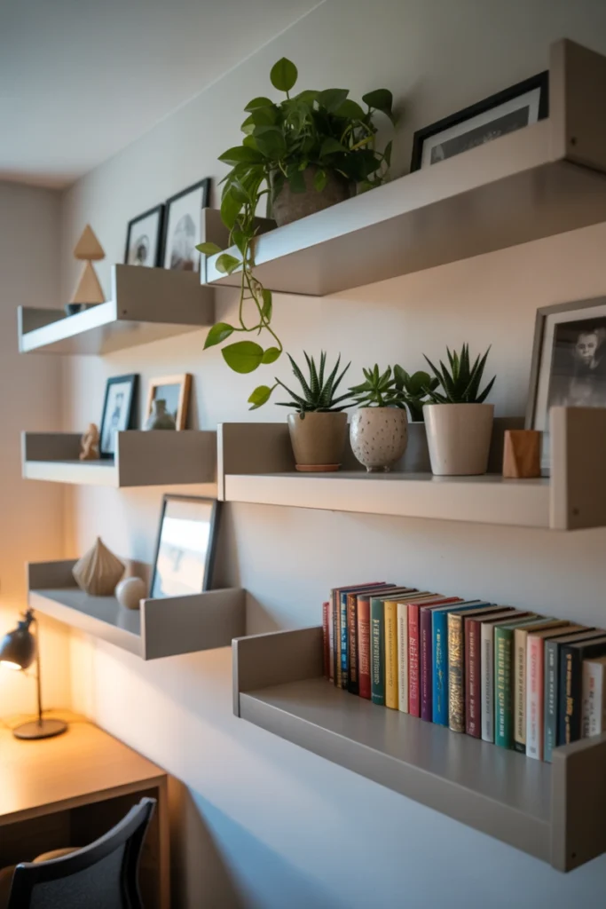 Wall shelving provides additional storage without occupying valuable floor space. Removable adhesive shelves or lightweight floating units allow you to display books, plants, art, or decorative pieces. These shelves contribute both function and style, especially when arranged in symmetrical or staggered patterns.