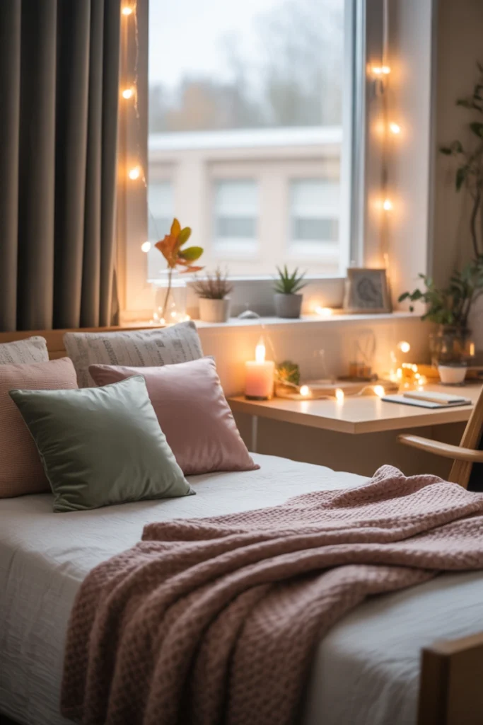 Rotating seasonal decor allows you to refresh your dorm room throughout the year without making major changes. Lightweight accents like throw pillow covers, small wreaths, or tabletop displays can reflect changing seasons or holidays. This keeps your space feeling new and exciting.
