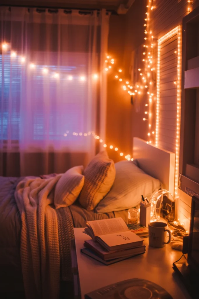 Lighting can transform the entire atmosphere of a dorm room. Warm lighting elements such as LED strip lights, string lights, salt lamps, or soft-glow table lamps create a relaxed and inviting ambiance. Harsh overhead lights often feel impersonal, so incorporating alternative lighting helps make the space more soothing. Layering different light sources ensures your room feels dynamic rather than flat.
