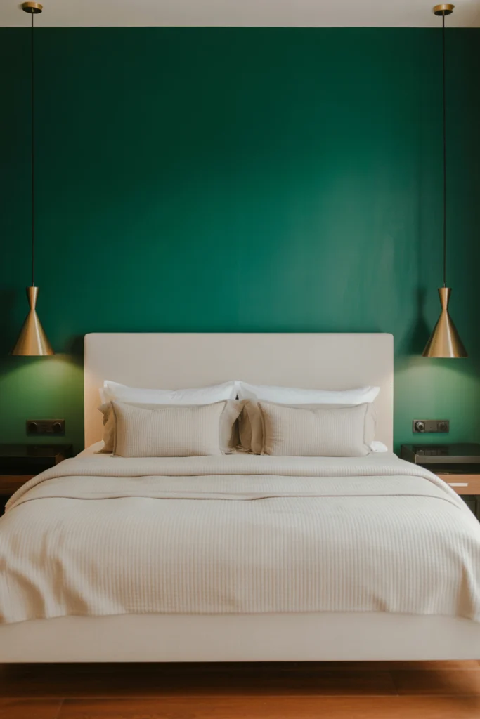 An accent wall can completely change the energy of a room. Whether it’s a dark color, textured wallpaper, or paneled wood, it draws attention and adds personality. Deep shades like navy, emerald, or charcoal create drama, while muted tones bring subtle sophistication. Accent walls also help define your bed area, making it the focal point of your space.