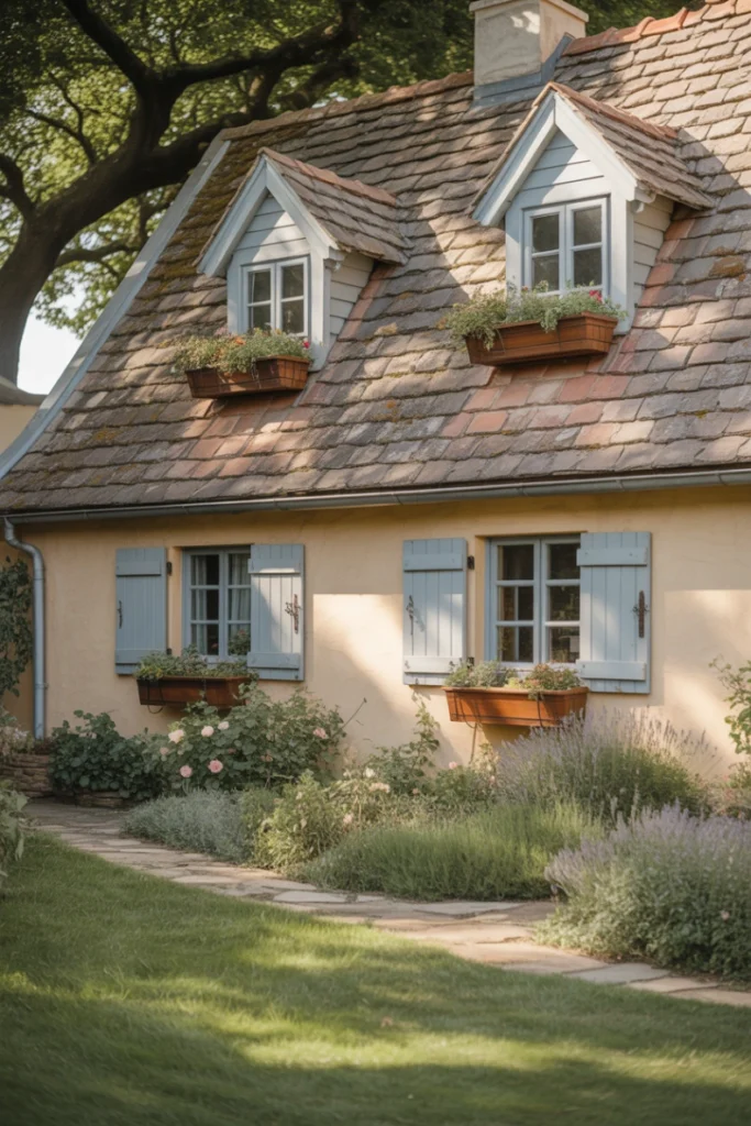 Cottage exterior house style ideas emphasize charm, warmth, and storybook appeal. These homes often feature pitched roofs, dormer windows, textured siding, and lush landscaping. The scale is typically smaller, creating an intimate and welcoming presence.