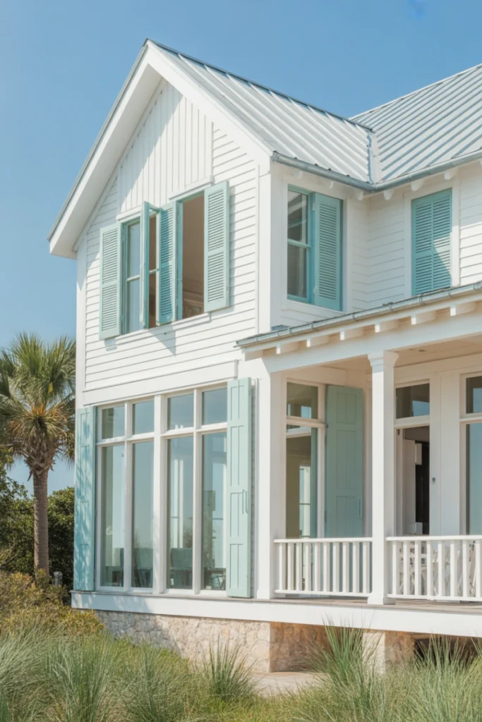 Durable materials such as wood siding and metal roofing are commonly used to withstand coastal conditions. This exterior house style is ideal for homeowners seeking a fresh, airy design with strong indoor-outdoor connection.