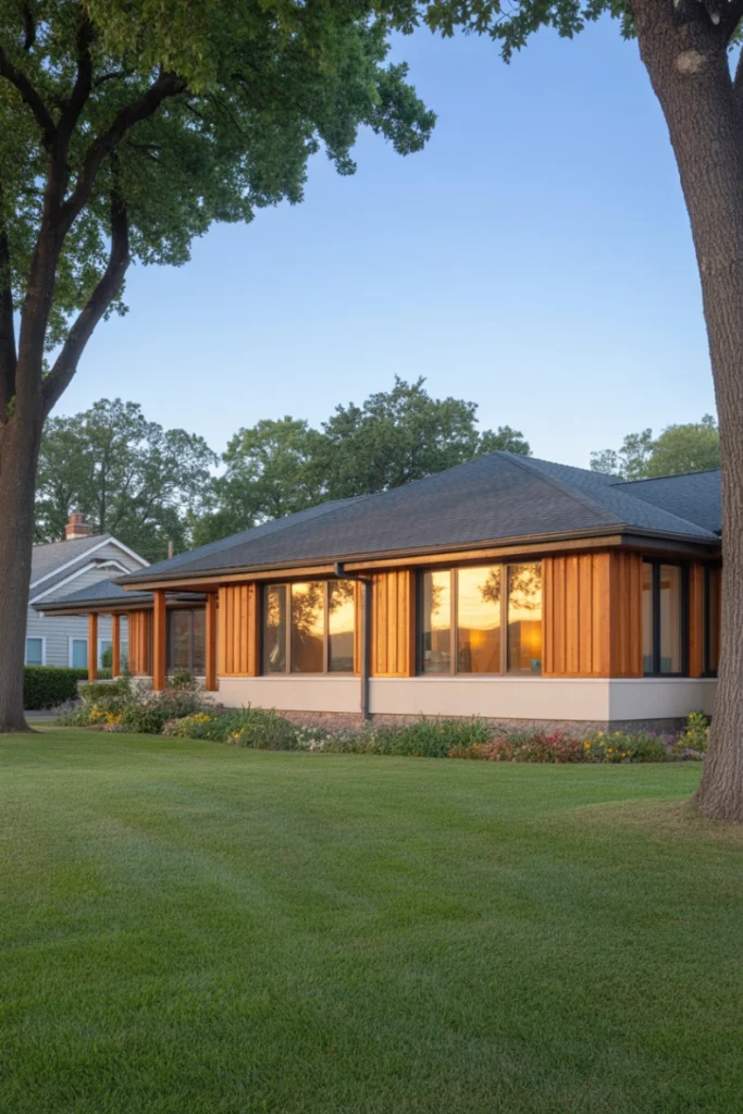 Ranch exterior house style ideas focus on simplicity, functionality, and single-story living. These homes typically have long, low profiles, open floor plans, and large windows that emphasize horizontal lines. Materials such as brick, wood, and stucco are commonly used.