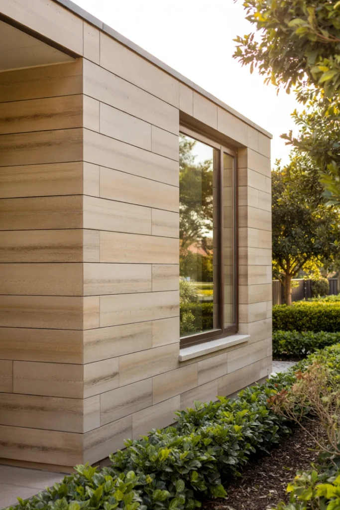 Durable and visually striking, these panels suit contemporary structures. Among Exterior Wall Panel Ideas, vertical metal panels reinforce modern geometry.
