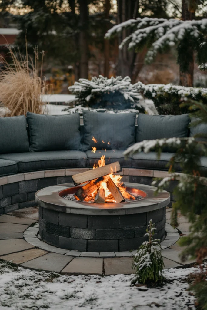 A year-round fire pit garden focuses on durability and comfort in all seasons. Weather-resistant materials, wind protection, and comfortable seating ensure usability beyond summer. Covers and storage help protect the fire pit when not in use.