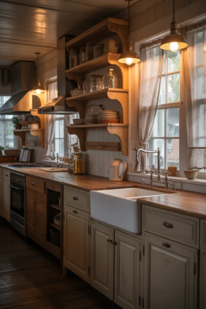 Practicality remains essential in retro kitchens. Open shelving, compact cabinets, and durable materials ensure functional workspace. The combination of old-fashioned charm and modern convenience makes this style ideal for homeowners seeking character and creativity in their galley layout.