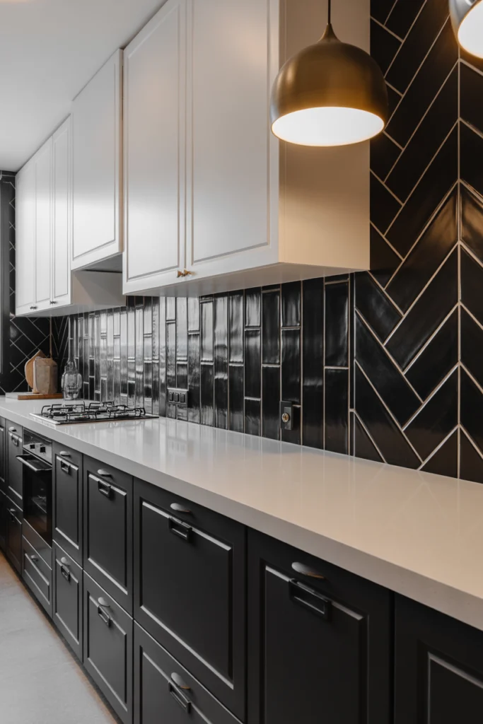 In addition to design impact, high-contrast setups help outline functional zones more clearly. Lighter shades on upper cabinets keep the space open, while darker tones on the bottom or backsplash anchor the layout. This approach adds sophistication and personality while maintaining practicality in small kitchens.