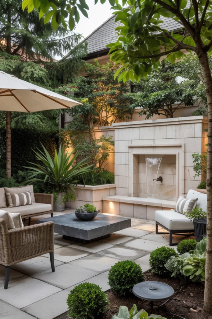 These garden design ideas are both stylish and practical, particularly in sunny climates. Stone paving and open layouts create a relaxed and elegant outdoor environment.