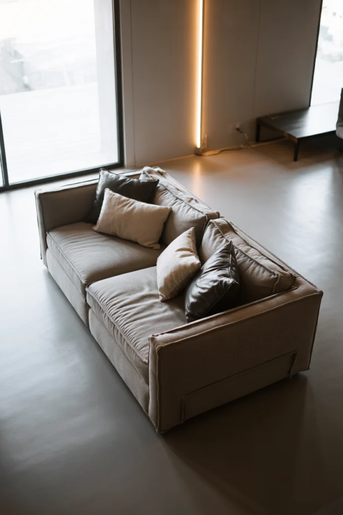 Gray floors with warm undertones prevent interiors from feeling cold or sterile. Beige or taupe hints create a cozy, welcoming atmosphere.