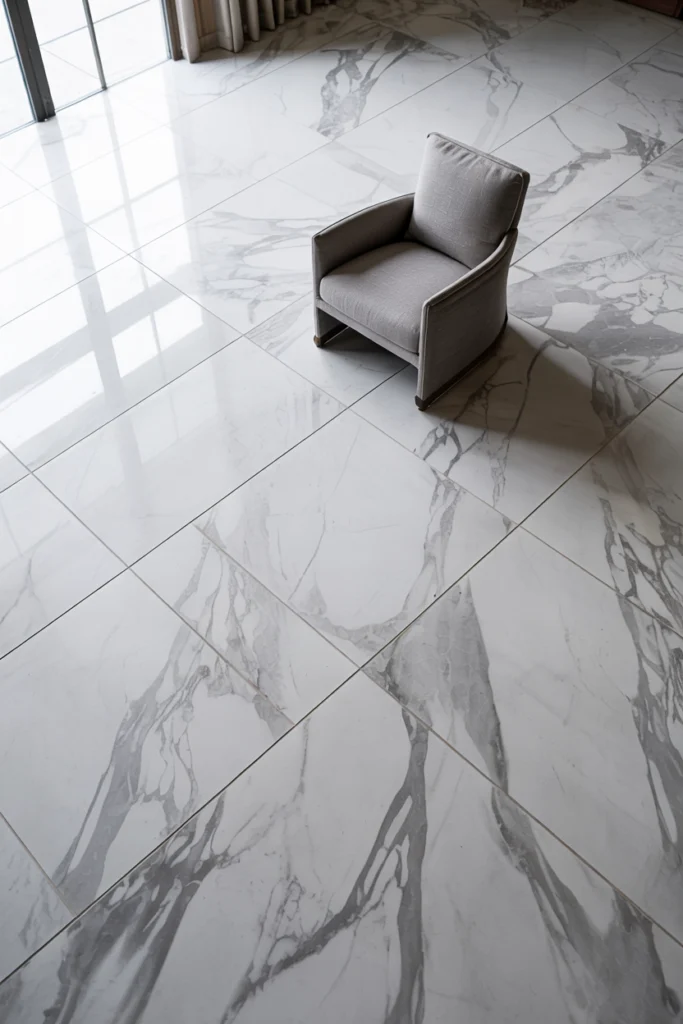 Large-format tiles reduce grout lines, creating a seamless look. Among Gray Floor Ideas, gray tiles offer versatility across residential and commercial-style interiors.