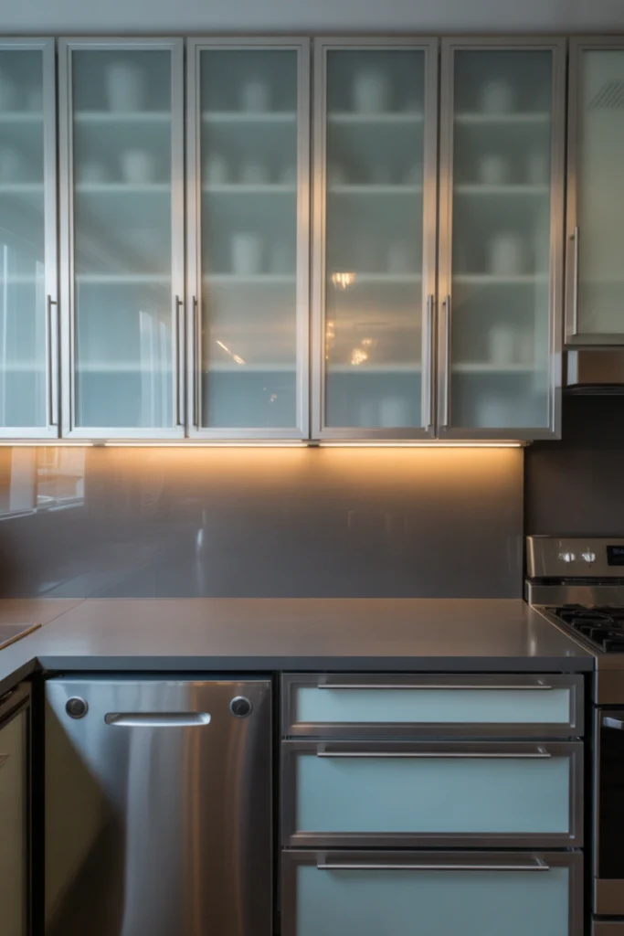 13. Sleek Gray Glass Cabinets