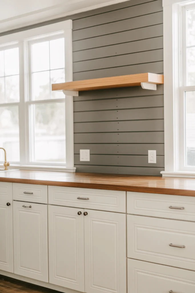 Gray shiplap walls bring character and texture to the kitchen. This material adds a charming farmhouse touch while maintaining a modern color palette. Whether you use shiplap on a single wall, around the island, or as part of a backsplash, gray tones help create a warm yet contemporary look. Shiplap is versatile and pairs beautifully with both rustic and modern elements.