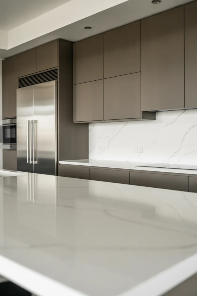 Concrete-inspired countertops bring an industrial yet refined look to the kitchen. These gray surfaces offer a clean, matte texture that contrasts beautifully with smooth cabinetry and glossy backsplashes. Whether you choose actual concrete or quartz that mimics the look, the result is a durable and stylish workspace that suits modern and contemporary homes. Their subtle patterns and soft tones create understated visual interest without dominating the design.